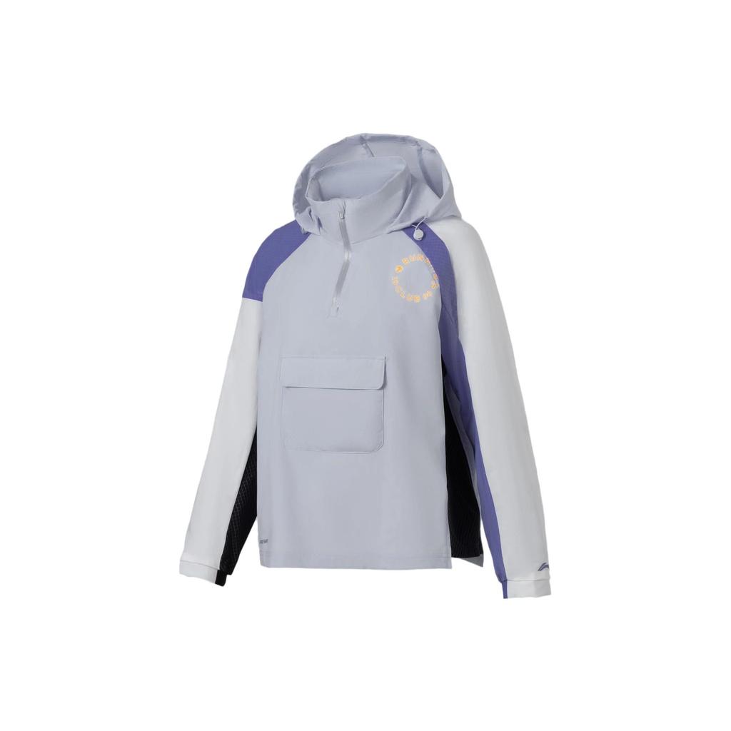 Li Ning Running Series Spliced Logo Letter Print Water-Resistant Loose Sports Long Sleeve Windbreaker Women Outerwear Light-Frost-Blue AFDS048-5