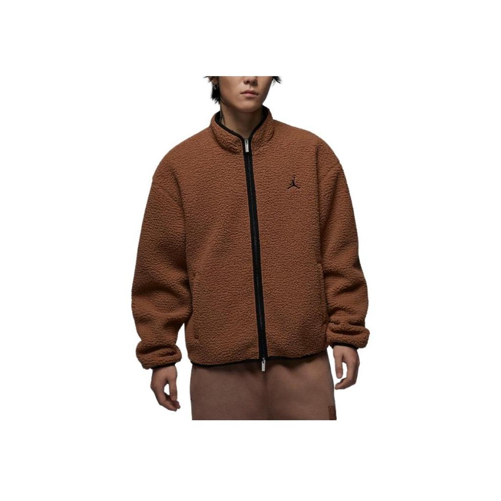 Jordan Flight Faux Shearling Stand Collar Loose Jacket Men Jacket Dark-Brown FV7449-223