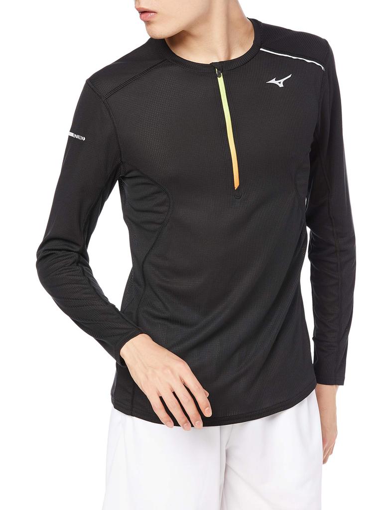 Mizuno Dry Aeroflow Running Long Size L Shirt, Half-Zip, Sleeve, Men's, Black, (J2MA0520)