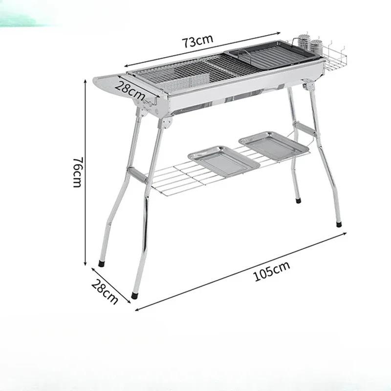 Outdoor Stainless Steel Charcoal Grill Large Size Barbecue Tool Portable Free Installation Handle Folding BBQ Cooking