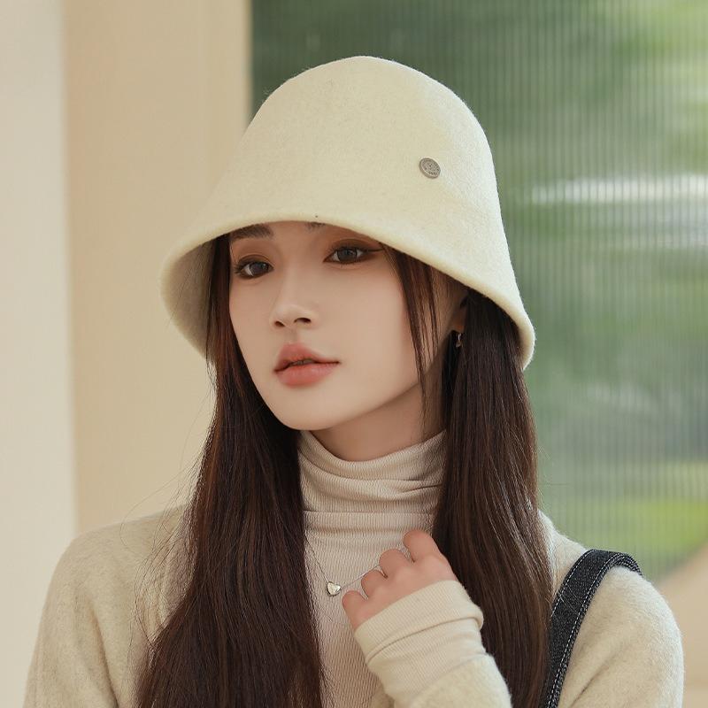 Autumn and Winter New High-end Wool Bucket Hat Women's Elegant Basin Hat Bucket Hat