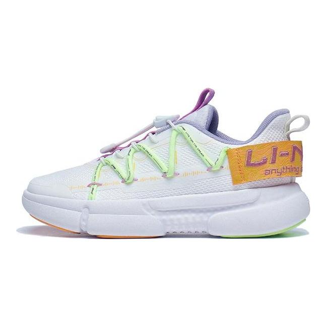 Li Ning Kids Sports Lifestyle Series Springback Shock Absorption Low-Top Casual Shoes Kids Casual Shoes Standard-White YKCT106-2