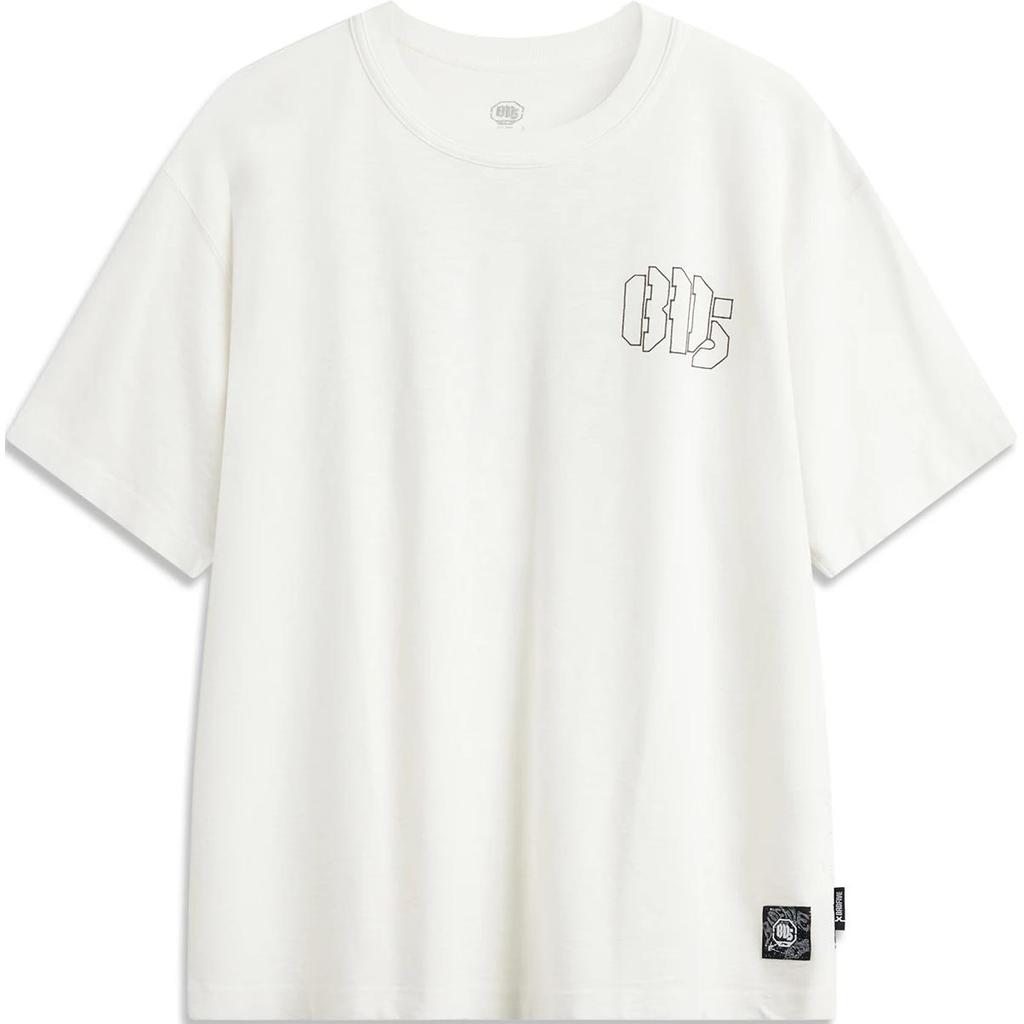 Li Ning Basketball Series Letter Round Neck Comfortable Breathable Loose Short Sleeve T-Shirt Men Tops Off-White AHSU433-4