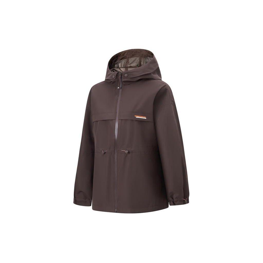 Li Ning Fitness Series Solid Color Water Resistant Windbreaker With Hood Women Outerwear Charcoal-Brown AFDU076-2