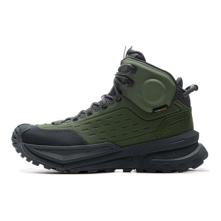 Li Ning CF River High Trendy Comfortable Outdoor Non-Slip Wear-Resistant High-Top Hiking Shoes Unisex Hiking Shoes Black Green AHTU015-2