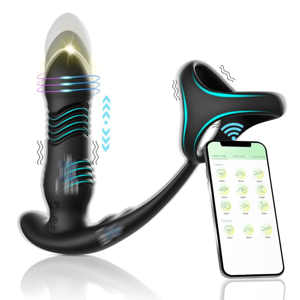Male Thrusting Anal Vibrators Butt Plug G Spot Prostate Massager Wireless Remote Delayed Ejaculation Cock Ring Sex Toys for Men