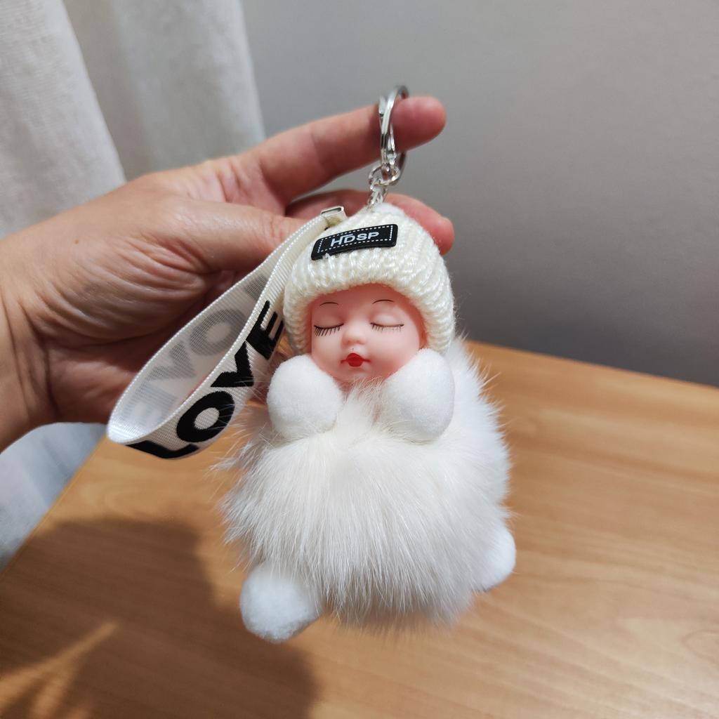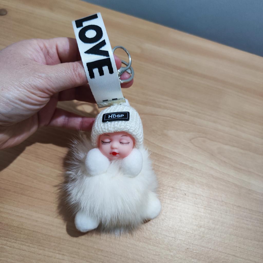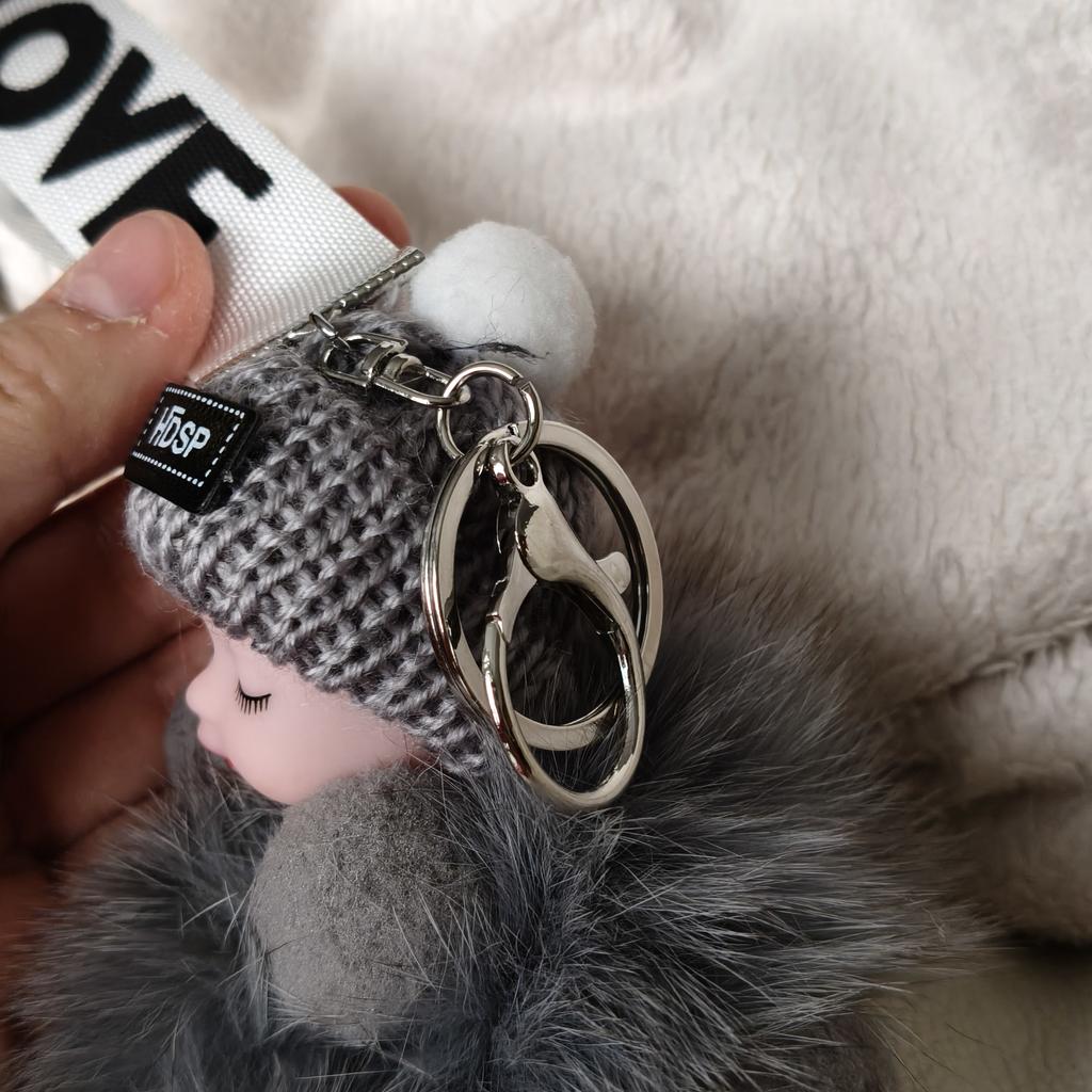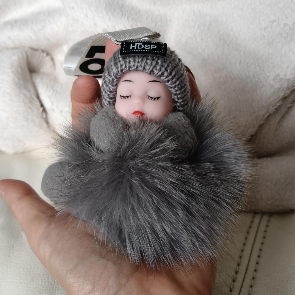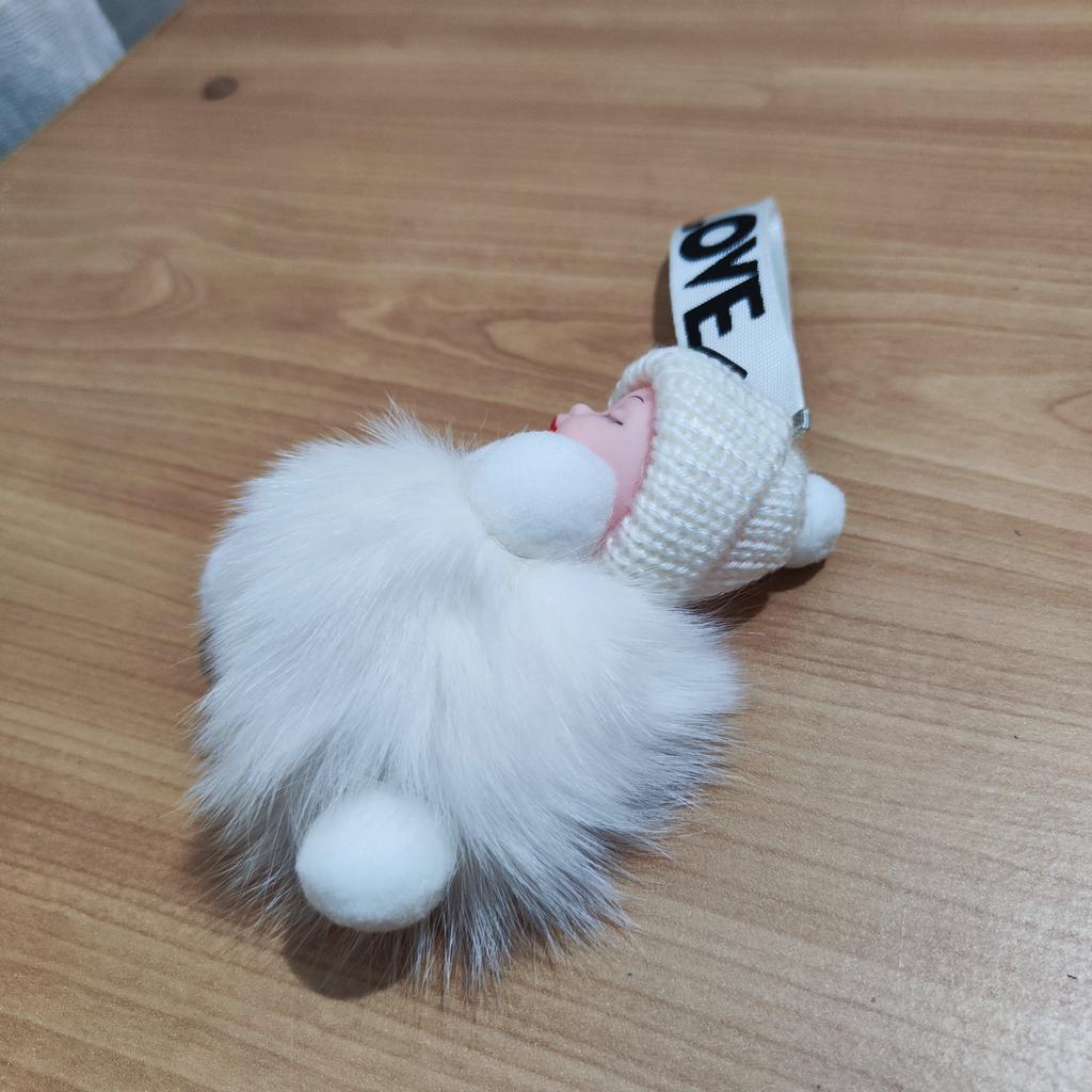 KEYCHAIN - CHARMS Adorable plush doll with an openable hook. You can attach it to your bag, use it as a maxi keychain, or simply use it as.....a plush toy . No glue stains, no defects. The fur part is not imitation but real natural fur . Available in 4 colors. Tracked shipment arrived in Italy in 16 days. Recommended purchase 👍