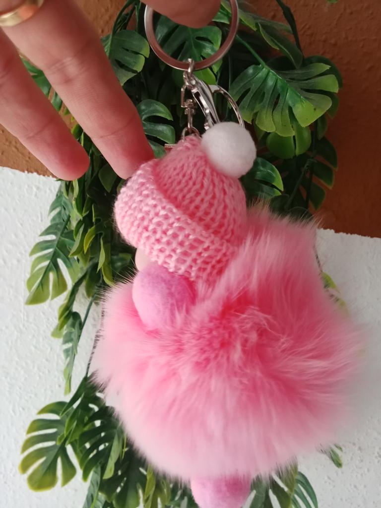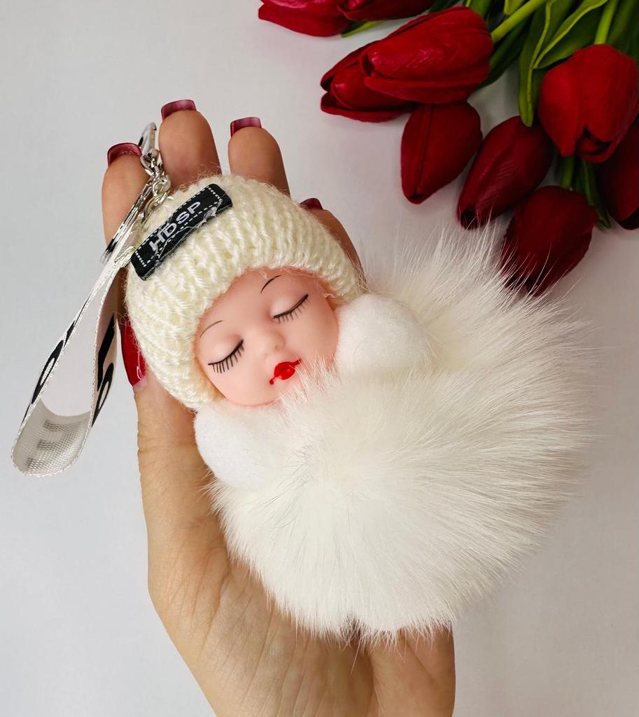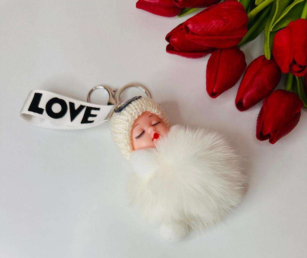 Fluffy Keychain, Bag Hanger, Doll In A Hat