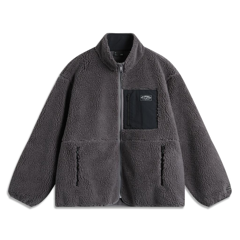 Li Ning Sports Fashion Series Fleece Warm Casual Versatile Loose Stand Collar Windproof Fleece Jacket Unisex Jacket Smoke-Gray AFDUC95-4
