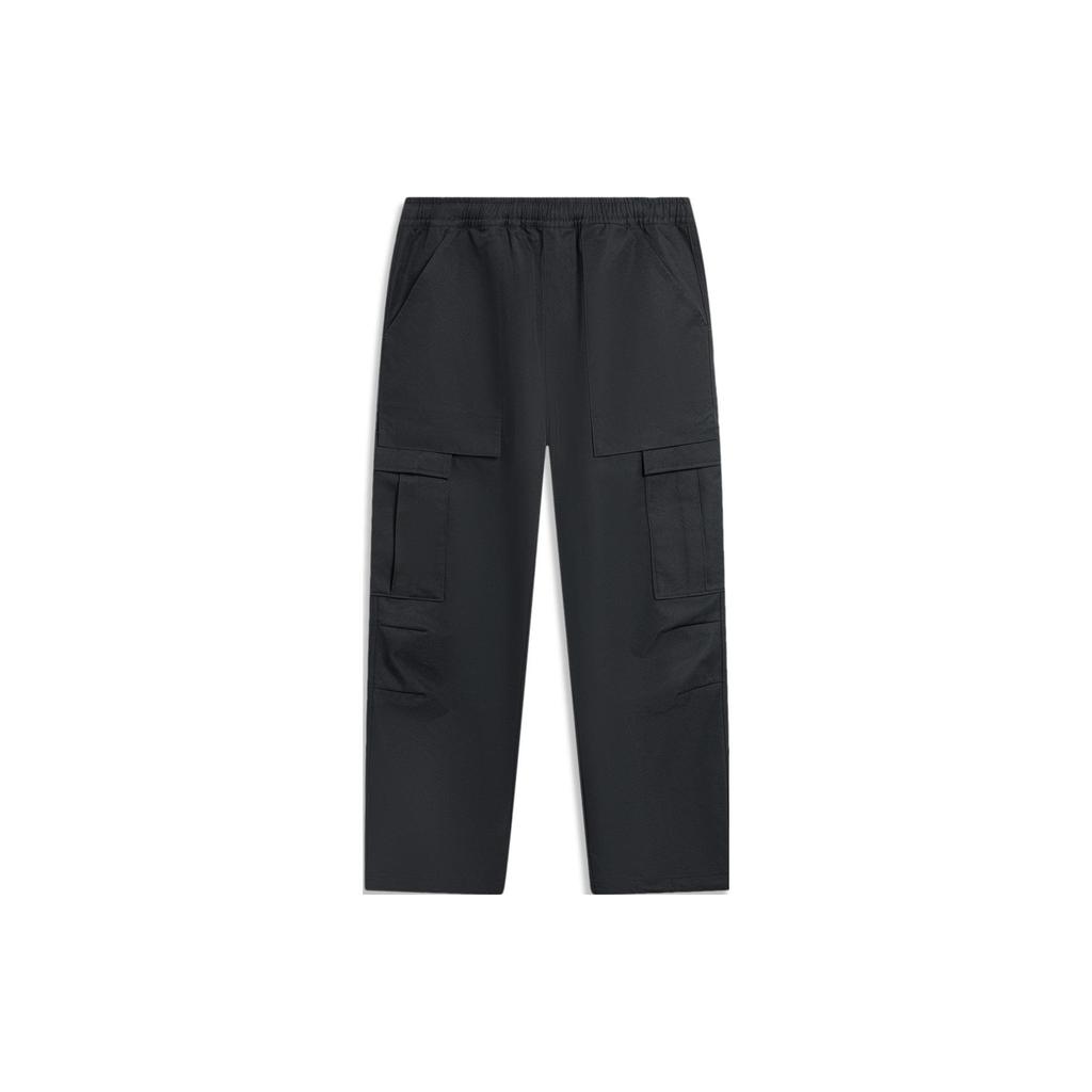 Li Ning Pure Color Mid Waist Straight Casual Pants Men Bottoms Black AYKU039-2