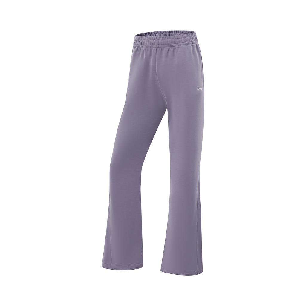 Li Ning Fitness Series Casual Simple Solid Color Flared Knit Sports Pants Women Bottoms Dark-Gray Purple AKLV718-2
