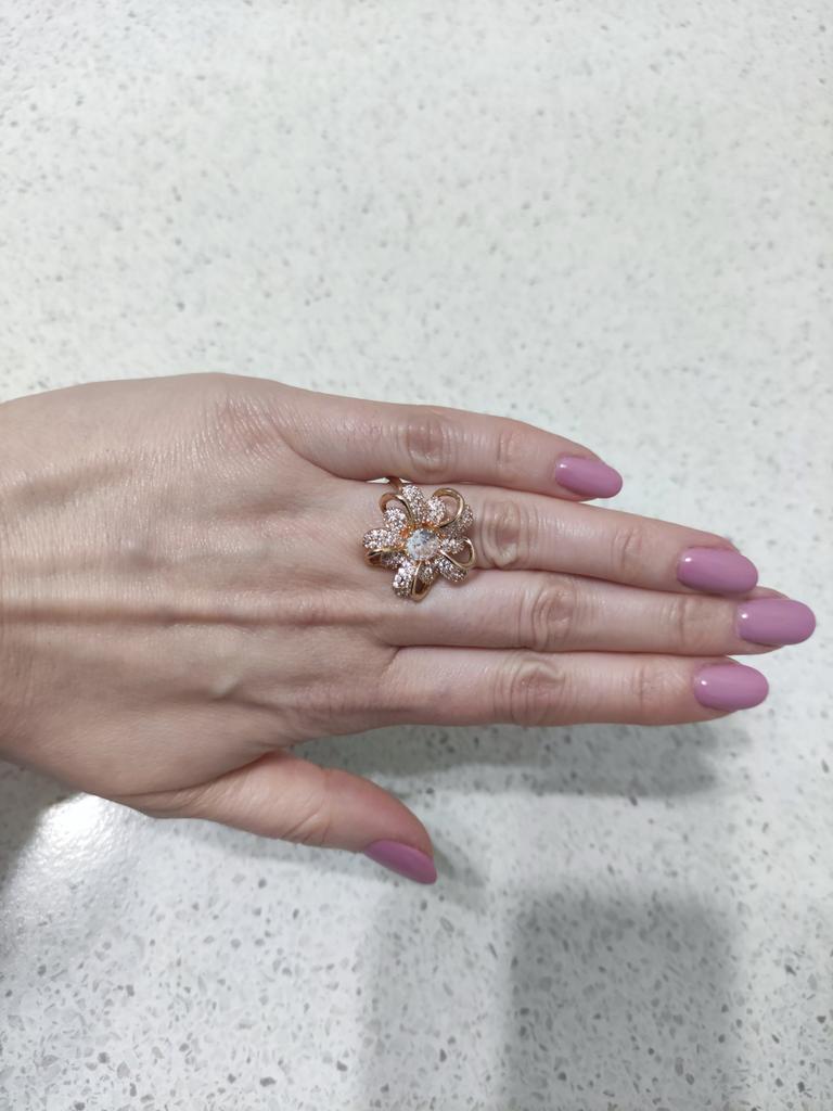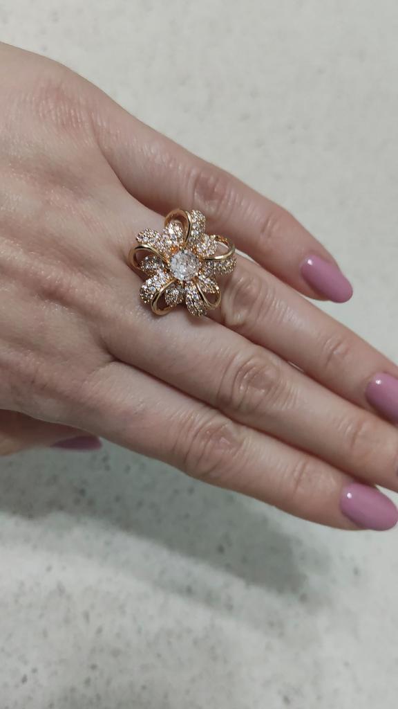 Large Crystal Flower Rings for Women Luxury Gold Color Engagement Ring Brilliant Fine Jewelry