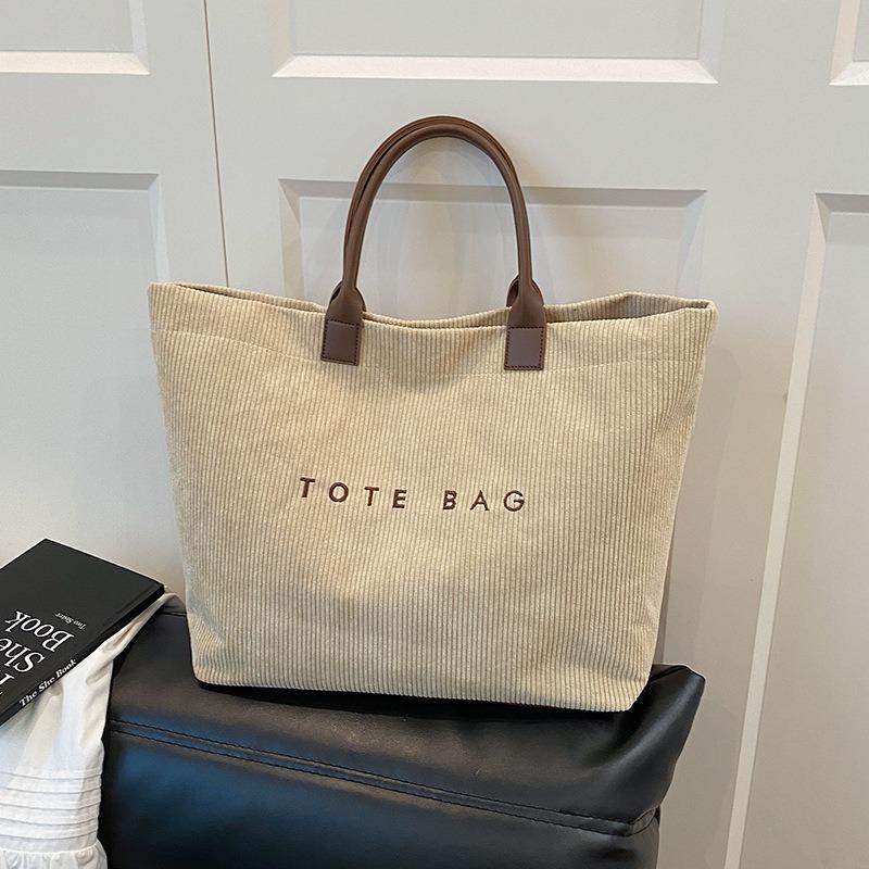 Simple Tote Bag Retro Letter Casual Versatile Handbag Minimalist Flocking Simple Large Capacity Vegetable Pocket