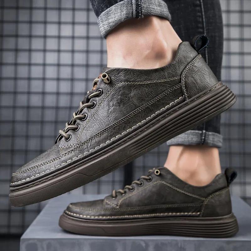Fashion Genuine Leather Casual Shoes for Men Shoes Handmade Sneakers Man Comfortable Design Leather All-match Comfortable Skate Shoes