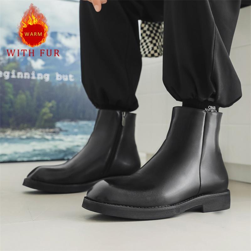 Fashion Black Autumn and Winter Men's Boots Classic and Versatile Design Fashion Party Daily Business Office Outdoor Warm Leather Shoes