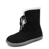 Large Size Flat Short Boots Women's 20 Winter New Two-wear Lace-up Suede Warm Snow Boots