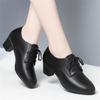 Fashion Deep Mouth Soft Leather Shoes Women Oxfords Platform Pumps High Heels Shoes Black Lace Up Ladies Office Work Pumps Shoes