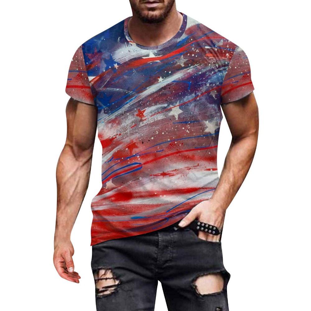 Flag Pattern 3D Digital Printing Men's Casual Round Neck Short Sleeved T-shirt