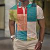 Multi Block Color Blocking Pattern 3D Digital Printing Men's Casual Polo Shirt