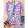 Summer Round Neck 3D Flower Pattern Print Top Fashionable Casual Short Sleeved Women's T-shirts