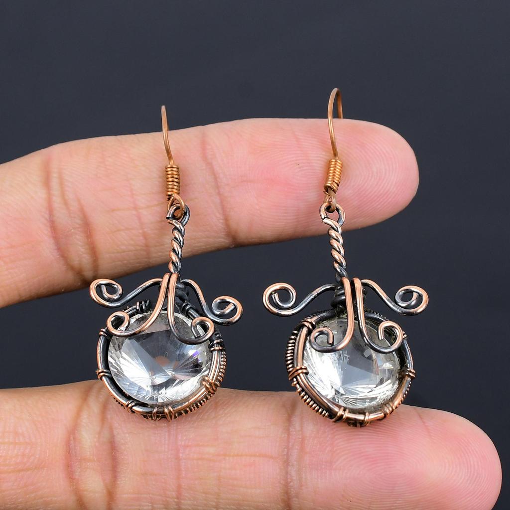 White Topaz 999 Copper Wire Wrapped Earrings, Handmade Gemstone Jewelry Earrings For Memorial Day