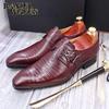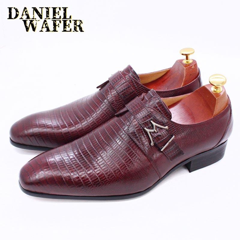 Fashion Luxury Genuine Leather Men's Oxford Shoes Burgundy Black Office Business Dress Loafers with Buckle Pointed Toe for Wedding