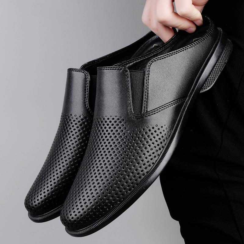 Fashion Men's Genuine Leather Large Size Breathable Sandals Summer 2025 Casual Hollow Out Slide Slippers Outdoor Anti-Slip Sandals