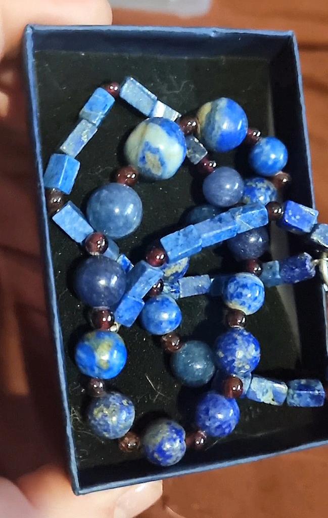 Natural Lapis Lazuli Mozambique Garnet Smooth Beads Necklace 3-12 Mm 18" UB-7883 UB-7883