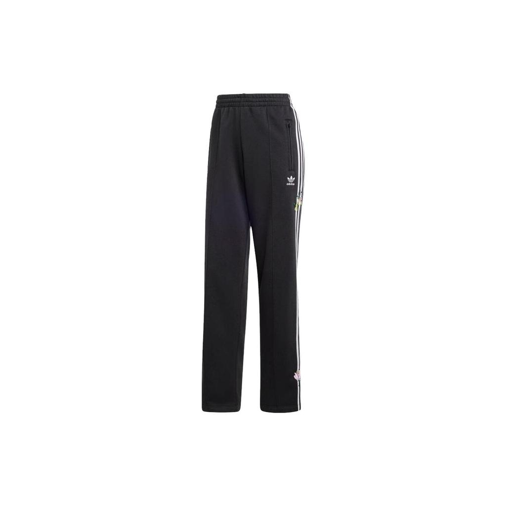 adidas Originals Logo Stripe Embroidered Elastic Waist Straight Leg Vintage Sports Knit Pants Women Pants Black IJ7086