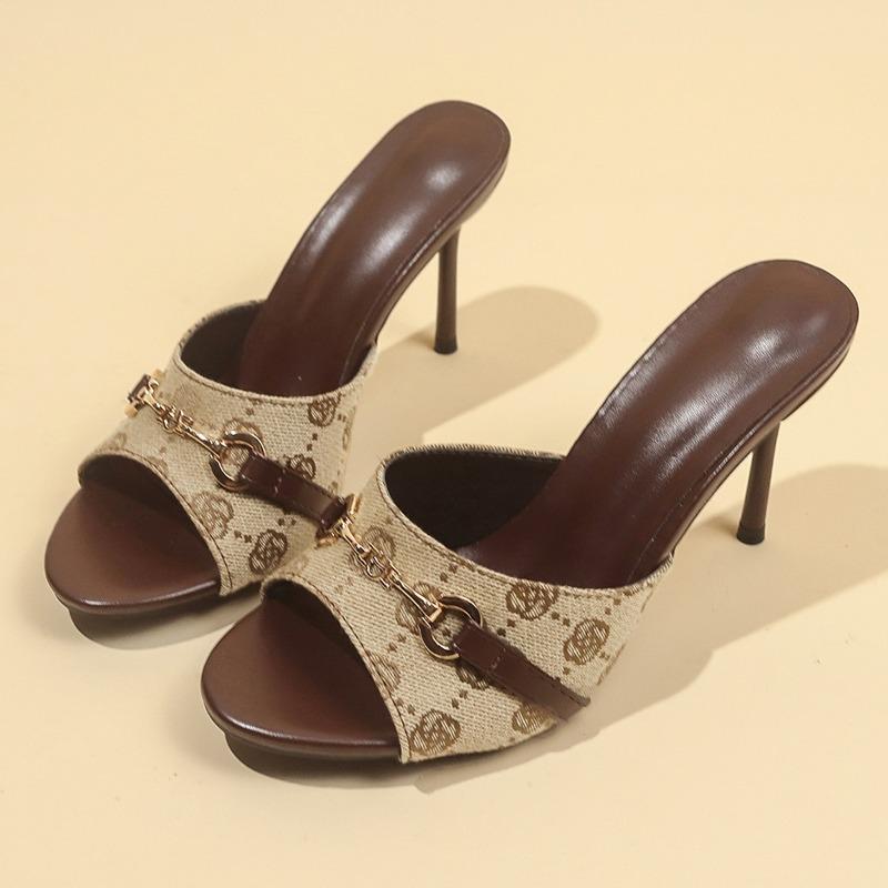 Fashion French Retro Slim Heeled Womens Slippers New Fashionable Casual Heeled Sandals for Women Roman Style Slippers Sandalias De Mujer