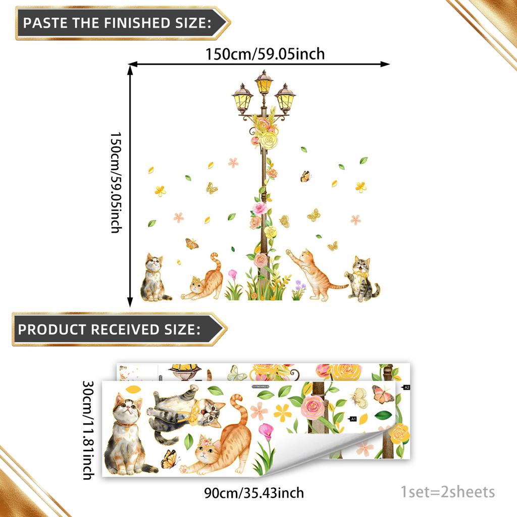 Tj17503 Hand-Painted Cat Street Lamp Flower Bronzing Wall Sticker Decoration Children'S Room Bedroom Background Self-Adhesive Wall