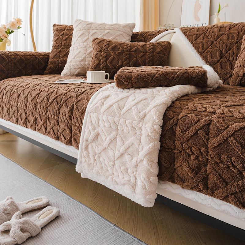 Light Luxury Plush Sofa Cushion Autumn And Winter Seat Cushion Non-Slip High-End Sense Straight Row Seat Cushion Cover Dustproof
