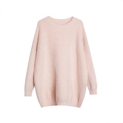 European and American Popular Imitation Mink Sweater Women's Autumn and Winter Soft Waxy Loose Lazy Wind Long-sleeved Top Crew Neck Knitted Sweater