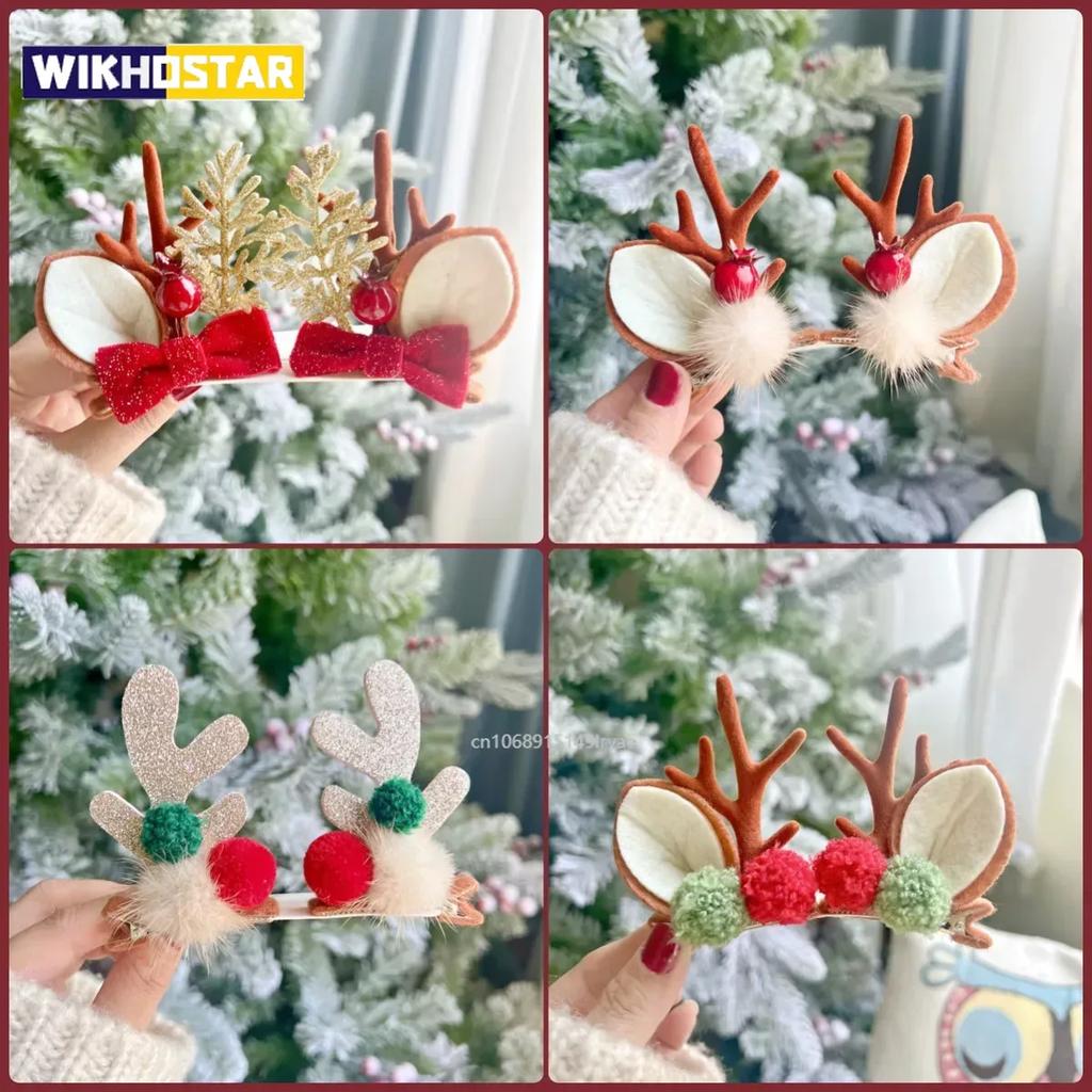 Kawaii Christmas Elk Ear Hair Clip Women Girl Santa Snowman Hairpin Xmas Party Barrettes For Kids Cosplay Headwear