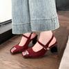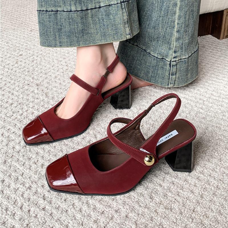 Fashion Square Heels Mary Janes Square Toe Med Heels Flats Spring/Autumn Solid Color Women's Shoes Buckle Strap Fashion Ladies Sandals