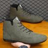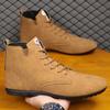 Fashion Men High Top Suede Casual Shoes with Brown Leather Lace Up Ankle Boots Cushioned Insoles Anti Slip Black Sole Retro Style Boots