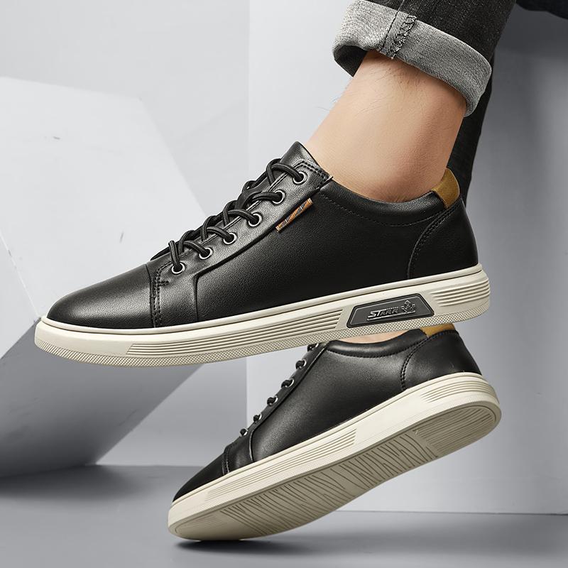 Fashion Men's Genuine Leather Sneakers Casual Fashion Walking Shoes Comfortable Lightweight Skate Shoes for Men Breathable Men Flats