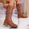 Winter Coarse Heel Western Cowboy Boots Embroidered Boots, Style Tall Round Boots