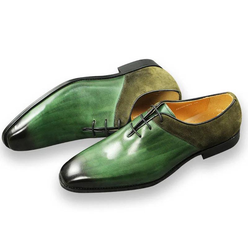 Fashion Green Classic Men Shoes Leather Formal Casual Wedding Party Lace Up Oxfords Big Size Suede and Split Leather Footwear For Males