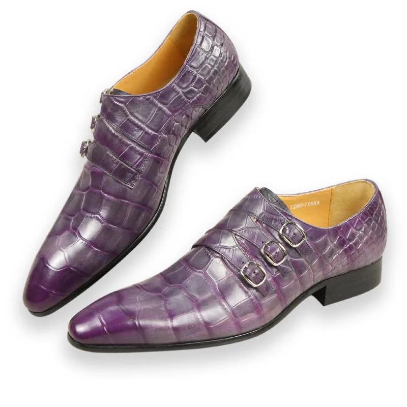 Fashion Wholesale Men's Leather Shoe Handmade Crocodile Pattern Engraved Office Business Wedding Party Fashion Shoe Leather Shoes Purple