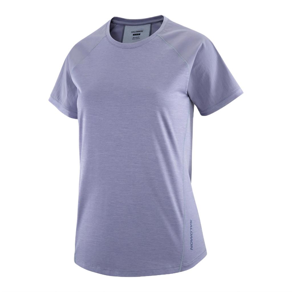 SALOMON Outline Round Neck Solid Color Comfortable Casual Short Sleeve T-Shirt Women T-Shirt Granite-Blue C24702