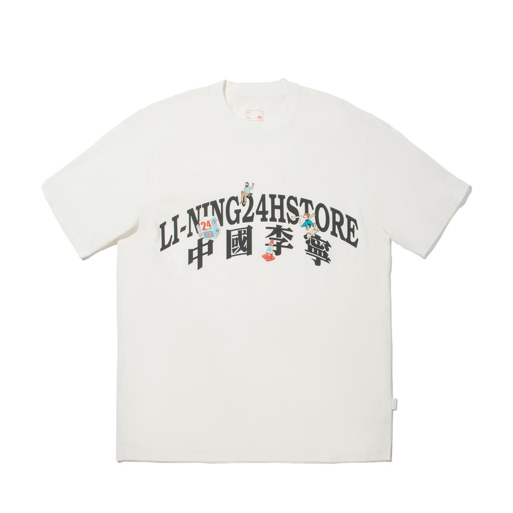 Li Ning Letter Round Neck Comfortable Breathable Versatile Short Sleeve T-Shirt Men T-Shirts Off-White AHSVB17-5
