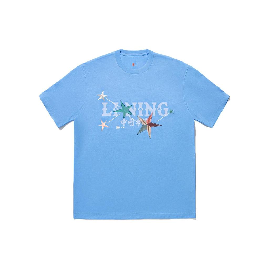 Li Ning Letter Star Print Casual Round Neck Short Sleeve T-Shirt Men Tops Oil-Paint-Blue AHSU265-3