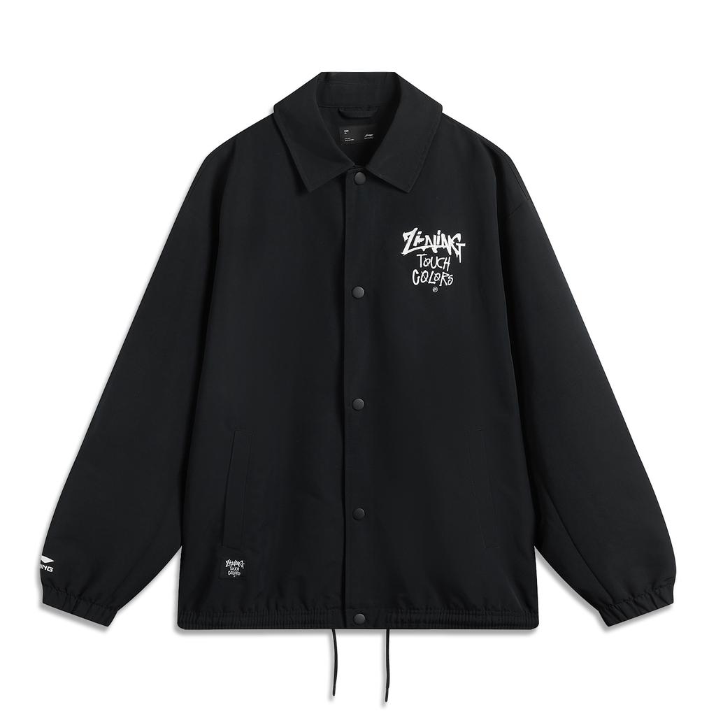 Li Ning Sports Lifestyle Series High Street American Vintage Comfortable Casual Simple Loose Letter Print Polo Jacket Unisex Jacket Black AJDV085-2