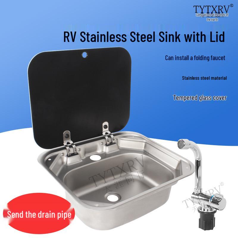 Folding RV Stainless Steel Sink with Lid for Kitchen and Vegetable Washing