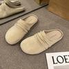 Fashion Aphixta Pleated Candy Color Flat Outside Woman Slippers Round Toe Low Heel Suede Slip On Half Slide Spring Summer Woman Shoes