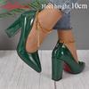 Fashion Aphixta Hot Sale Sexy Super High Heel 10cm Square Heels Pumps Women Gold Metal Chain Ankle Strap Shoes Pointed Toe Big Size50 53