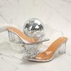 Fashion Baotou Sandals Autumn New Pointed Toe Shallow Mouth Clear Strap Rhinestone Square Buckle Slip Foot Crystal Heels