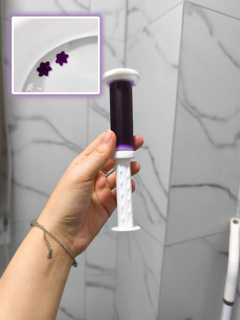 Toilet cleaner ⨠Just press on the inside of the cup and create a beautiful flower of sanitizing gel. Every time you flush the toilet, the water will cause the flower to dissolve little by little and leave the toilet perfumed.. I have tried the blue one which has a marine/oceanic scent but the seller has many more different options with other scents to choose from.