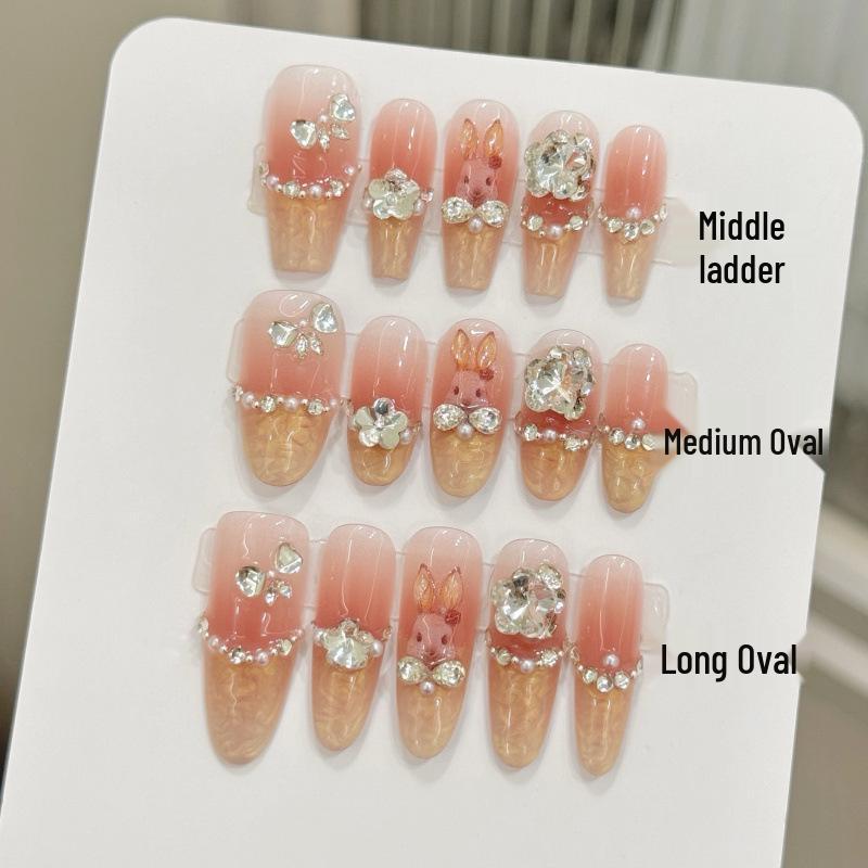 Rococo Rabbit Cartoon Bunny Blush French Stacked Diamond Handmade Wearable Nail Art Patches